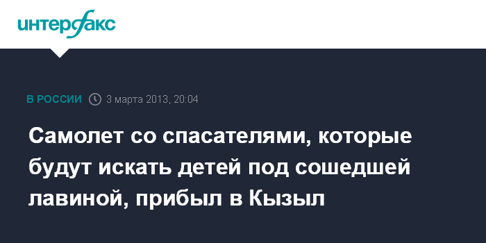 Самолет со спасателями, которые будут искать детей под сошедшей лавиной, прибыл в Кызыл