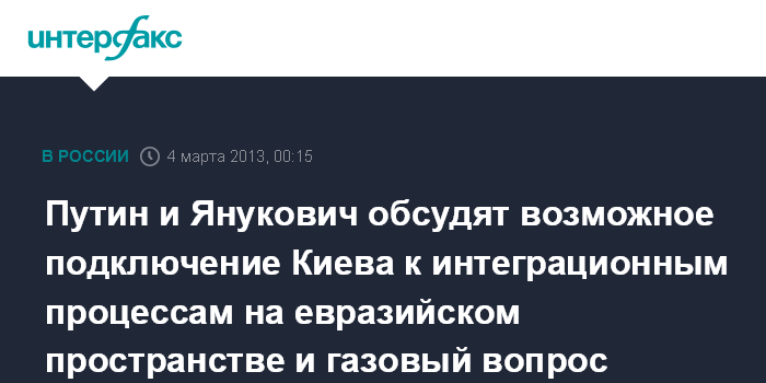 Путин и Янукович обсудят возможное подключение Киева к интеграционным процессам на евразийском пространстве и газовый вопрос