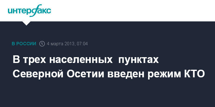 Владикавказ. 4 марта. ИНТЕРФАКС-ЮГ – В трех населенных пунктах Пригородного района Северной Осетии введен режим контртеррористической операции (КТО), сообщили агентству «Интерфакс-Юг» в пресс-службе ФСБ по республике.