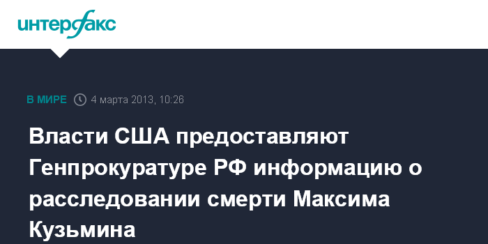 Власти США предоставляют Генпрокуратуре РФ информацию о расследовании смерти Максима Кузьмина