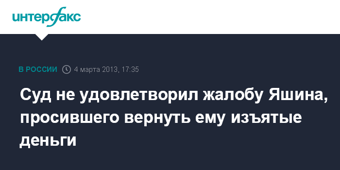 Суд не удовлетворил жалобу Яшина, просившего вернуть ему изъятые деньги