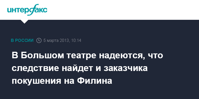 В Большом театре надеются, что следствие найдет и заказчика покушения на Филина