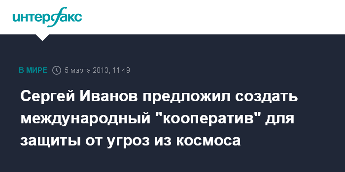 Сергей Иванов предложил создать международный "кооператив" для защиты от угроз из космоса