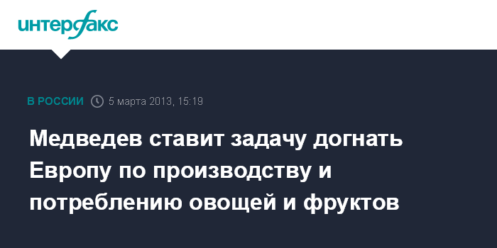 Медведев ставит задачу догнать Европу по производству и потреблению овощей и фруктов
