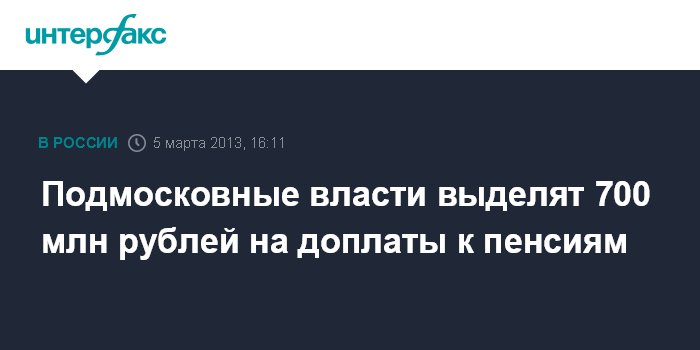 Подмосковные власти выделят 700 млн рублей на доплаты к пенсиям