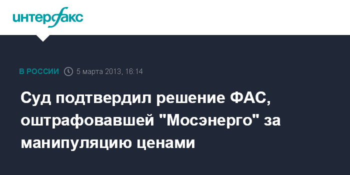 Суд подтвердил решение ФАС, оштрафовавшей "Мосэнерго" за манипуляцию ценами