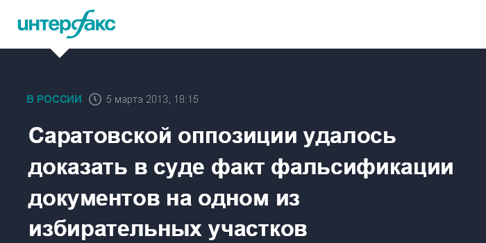 "Заявителю удалось доказать в суде, что реестр заявлений о голосовании на дому был сфальсифицирован", - сообщил агентству "Интерфакс-Поволжье" юрист Саратовского объединения избирателей (СОИ) Михаил Шаповалов, представлявший в суде интересы регионального отделения РПР-ПАРНАС.