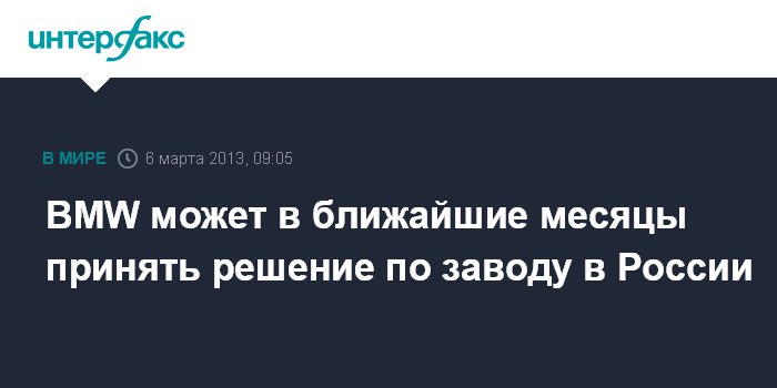 BMW может в ближайшие месяцы принять решение по заводу в России