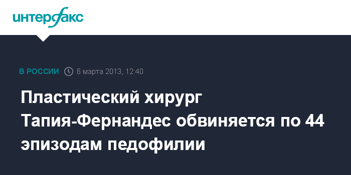 Пластический хирург Тапия-Фернандес обвиняется по 44 эпизодам педофилии