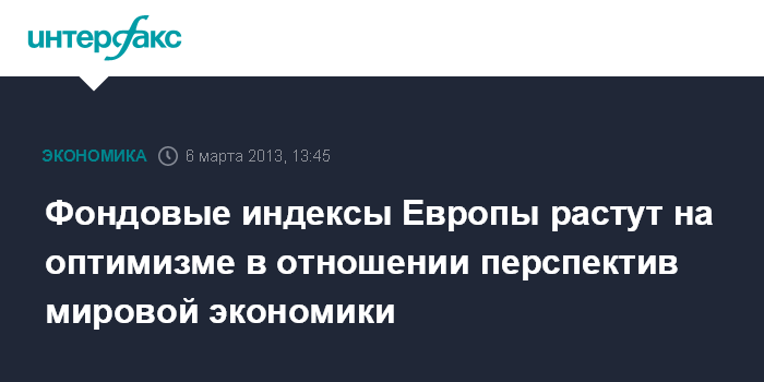 Фондовые индексы Европы растут на оптимизме в отношении перспектив мировой экономики