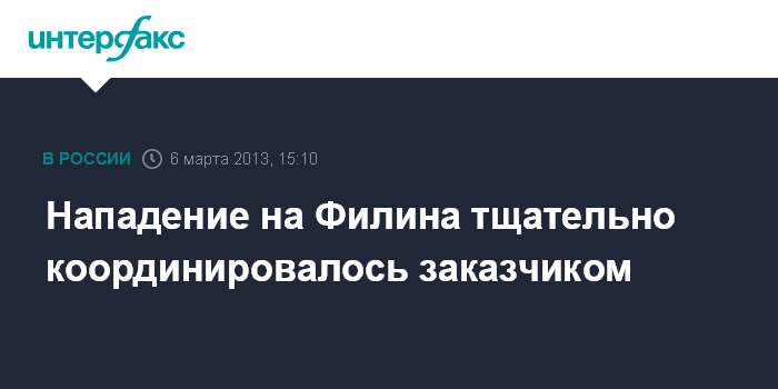 Как сообщили "Интерфаксу" в пресс-службе главка столичной полиции, в день совершения преступления было четко установлено, когда потерпевший выйдет из Большого театра. Организатор сообщил о том, что Филин направляется в сторону дома, где его ожидал исполнитель.