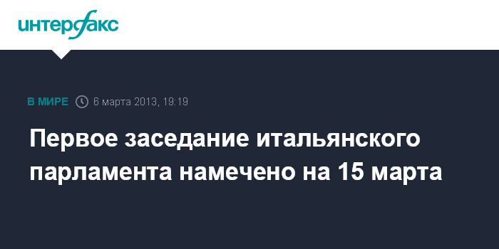 Рим. 6 марта. INTERFAX.RU - Итальянский парламент нового созыва проведет первое заседание 15 марта, говорится в заявлении, опубликованном на веб-сайте этого законодательного органа.