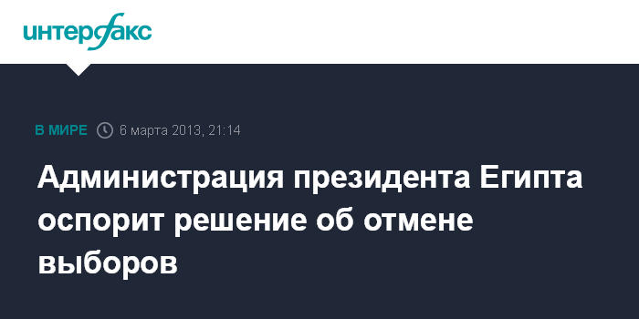 Каир. 6 марта. INTERFAX.RU - Администрация президента Египта Мухаммеда Мурси подаст апелляцию против решения суда объявить недействительным декрет, согласно которому выборы в парламент можно провести, начиная с 22 апреля, заявил юрисконсульт Мурси Мухаммед Гадалла.