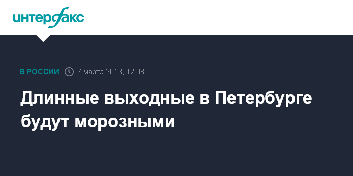 Санкт-Петербург. 7 марта. INTERFAX.RU - Холодная погода в Петербурге и Ленинградской области сохранится в течение всех выходных дней, сообщили "Интерфаксу" в городском Гидрометцентре в четверг.
