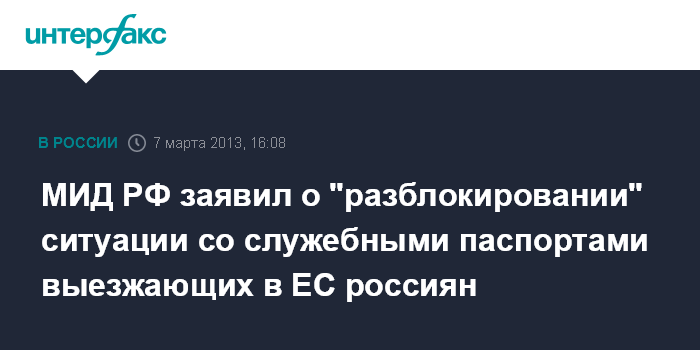 Брюссель. 7 марта. INTERFAX.RU - В итоге пересмотра Евросоюзом своей позиции по служебным паспортам ряда категорий граждан РФ этот вопрос разблокирован, и появилась возможность продолжать консультации с ЕС в конструктивном ключе, заявил в четверг "Интерфаксу" в Брюсселе постпред России при Европейском союзе Владимир Чижов.
