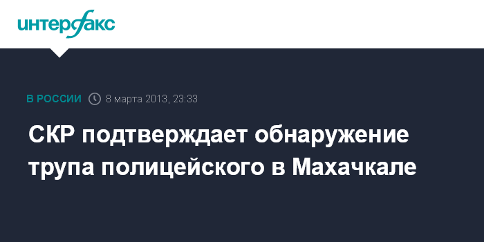 Махачкала. 8 марта. ИНТЕРФАКС-ЮГ - В СУ СКР по Дагестану подтвердили факт обнаружения в пятницу в Советском районе Махачкалы трупа сотрудника ППС, который исчез в декабре прошлого года.