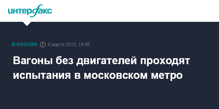 Москва. 9 марта. INTERFAX.RU - В московском метро начались испытания, которые определят возможность закупки вагонов новых моделей 81-760/761 без двигателей. "Речь идет о прицепных безмоторных вагонах. Во время ночных испытаний в составе, двигающимся с отключенным тяговым двигателем и электрооборудованием одного из вагонов, будут регистрироваться показатели ускорения, замедления, тормозного режима и изменения других характеристик", - рассказали "Интерфаксу" в пресс-службе метрополитена.