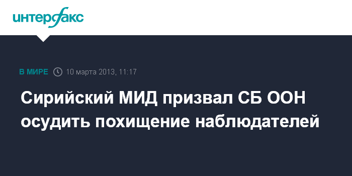 Сирийский МИД призвал СБ ООН осудить похищение наблюдателей