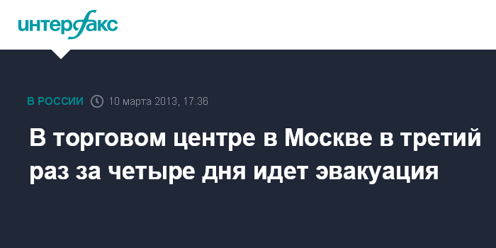 В торговом центре в Москве в третий раз за четыре дня идет эвакуация