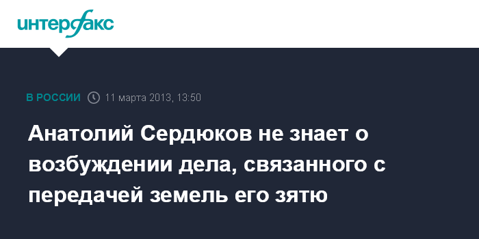 Анатолий Сердюков не знает о возбуждении дела, связанного с передачей земель его зятю