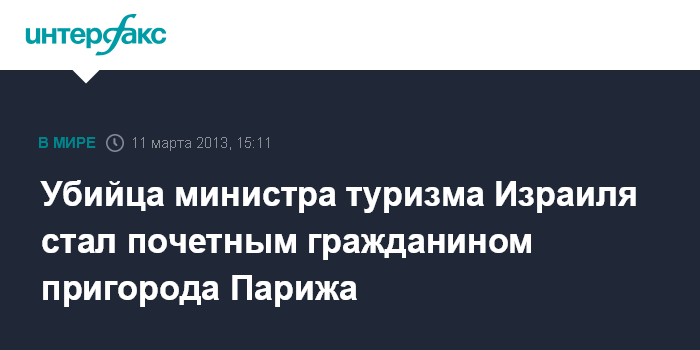 Убийца министра туризма Израиля стал почетным гражданином пригорода Парижа