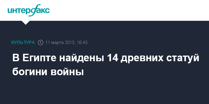 Каир. 11 марта. INTERFAX.RU - Группа немецких ученых обнаружила 14 статуй богини войны Сехмет в египетском городе Луксоре, говорится в заявлении министерства по делам древностей Египта, распространенном в понедельник.