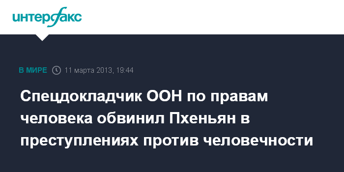 Женева. 11 марта. INTERFAXRU - Северокорейские власти систематически совершают преступления против человечности, заявил в понедельник на заседании Совета по правам человека ООН специальный докладчик по ситуации с правами человека в КНДР Марзуки Дарусман.