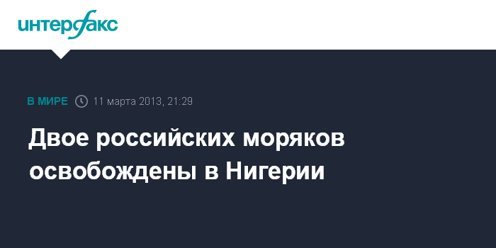 Лондон. 11 марта. INTEFAX.RU - Трое моряков, в том числе двое граждан России, похищенные пиратами у побережья Нигерии, освобождены, сообщила в понедельник в коммюнике компания-владелец судна Carisbrooke Shipping Ltd.