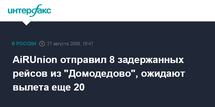 В соответствии с решением кризисного штаба под руководством главы Росавиации Евгения Бачурина, рейсы авиакомпаний альянса AiRUnion из аэропорта "Домодедово" начали выполняться с 06:15 МСК 27 августа после более чем суточной приостановки обслуживания.