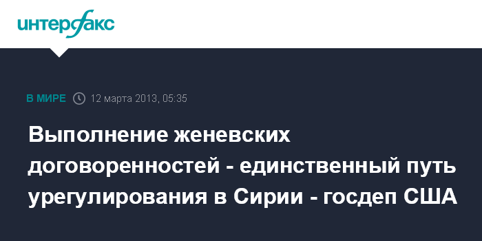 Выполнение женевских договоренностей - единственный путь урегулирования в Сирии - госдеп США