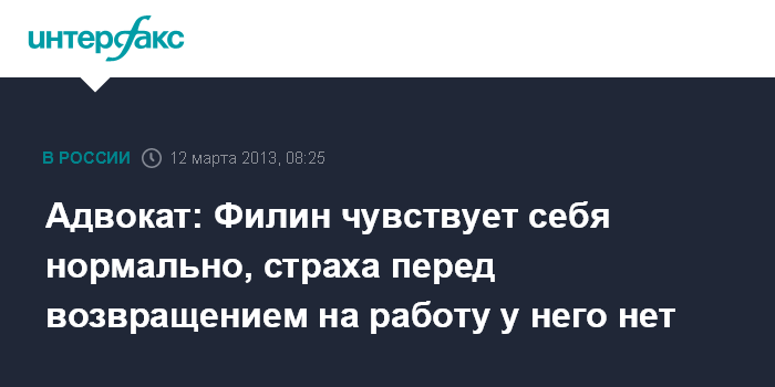Адвокат: Филин чувствует себя нормально, страха перед возвращением на работу у него нет