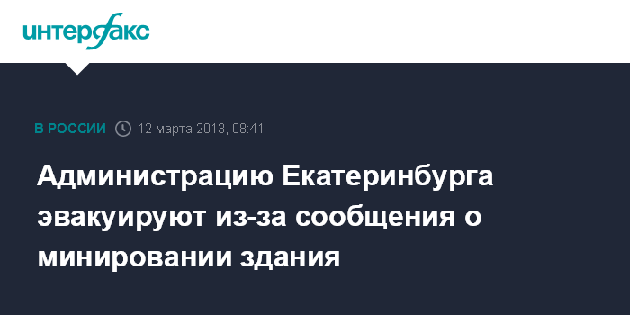 Екатеринбург. 12 марта. INTERFAX.RU - Полиция Екатеринбурга проводит экстренную эвакуацию людей из здания администрации города из-за поступившего звонка о заложенной бомбе, сообщил агентству "Интерфакс-Урал" руководитель пресс-службы ГУ МВД по Свердловской области Валерий Горелых.