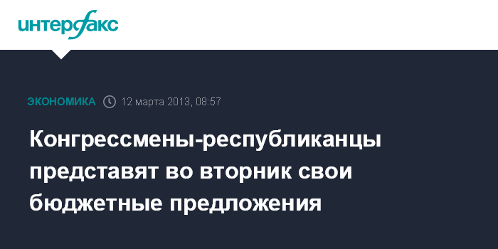 Вашингтон. 12 марта. NTERFAX.RU - Республиканцы-конгрессмены представят во вторник свой вариант долгосрочного бюджета США, который предполагает сокращение госрасходов на $4,6 трлн в течение 10 лет с целью достижения бездефицитного бюджета, сообщает Financial Times.