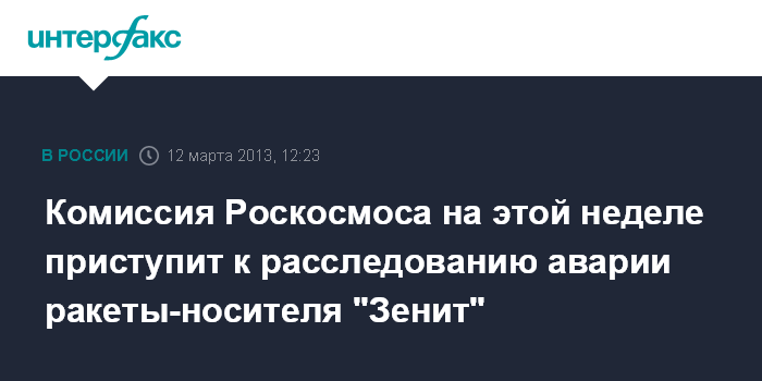 Москва. 12 марта. INTERFAX.RU - Роскосмос формирует собственную комиссию по расследованию причин аварии ракеты-носителя "Зенит" по программе "Морской старт", сообщил журналистам во вторник глава Роскосмоса Владимир Поповкин.