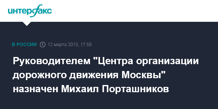 Москва. 12 марта. INTERFAX.RU - Бывший заместитель префекта Троицкого и Новомосковского административных округов Москвы Михаил Порташников возглавил "Центр организации дорожного движения Москвы", сообщили в пресс-службе столичного департамента транспорта и развития дорожно-транспортной инфраструктуры.