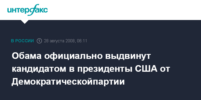 об официальном выдвижении Барака Обамы кандидатом в президенты США от