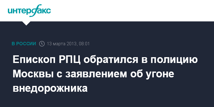 Епископ РПЦ обратился в полицию Москвы с заявлением об угоне внедорожника