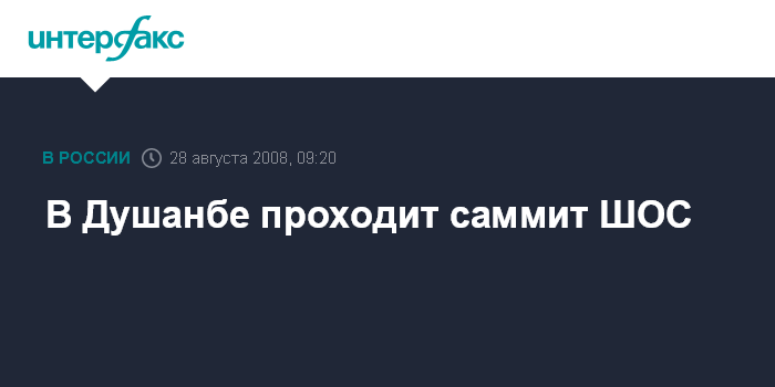 Москва. 28 августа. INTERFAX.RU - В столице Таджикистана открылось очередное заседание Совета глав государств Шанхайской организации сотрудничества. Членами ШОС являются шесть государств - Россия, Казахстан, Китай, Киргизия, Таджикистан и Узбекистан.