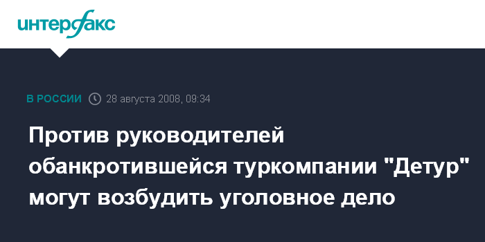 Против руководителей обанкротившейся туркомпании "Детур" могут возбудить уголовное дело