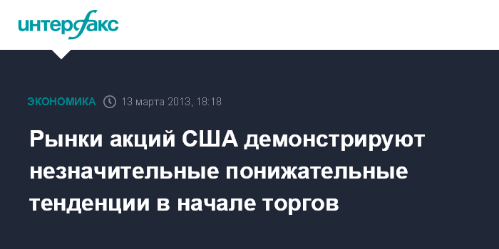 Рынки акций США демонстрируют незначительные понижательные тенденции в начале торгов