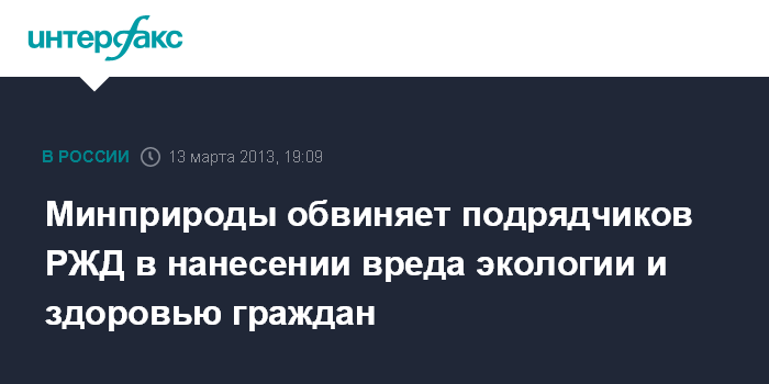 Москва. 13 марта. INTERFAX.RU - Министерство природных ресурсов и экологии РФ предъявляет серьезные претензии к подрядчикам ОАО "Российские железные дороги" - компаниям "ТрансЭко" и "ТМХ-Эко", говорится в сообщении Минприроды.