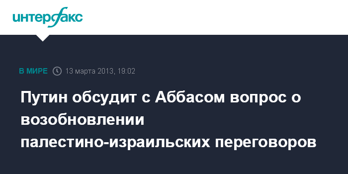 Путин обсудит с Аббасом вопрос о возобновлении палестино-израильских переговоров