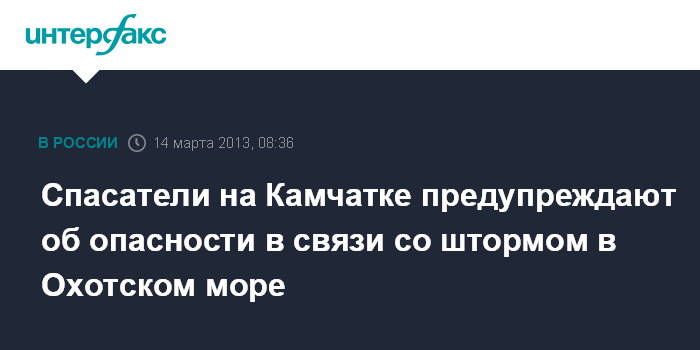 Петропавловск-Камчатский. 14 марта. INTERFAX.RU - Волнение высотой 8 метров ожидается 15 марта в Охотском море у западного побережья Камчатки, сообщает в четверг пресс-служба ГУ МЧС по Камчатскому краю.