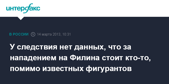 У следствия нет данных, что за нападением на Филина стоит кто-то, помимо известных фигурантов