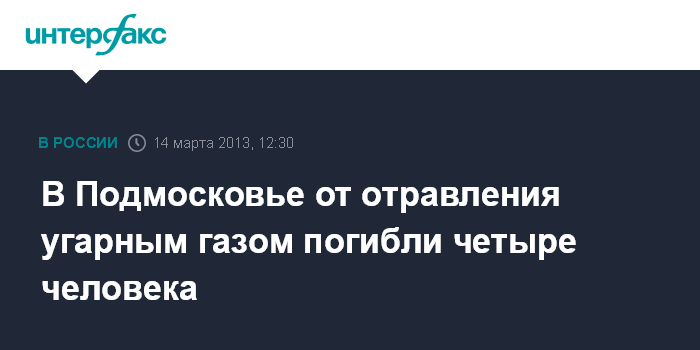Москва. 14 марта. INTERFAX.RU - Четыре человека, включая двух детей, погибли в подмосковном селе предположительно из-за отравления угарным газом, сообщили "Интерфаксу" в пресс-службе ГУ МВД России по Московской области.