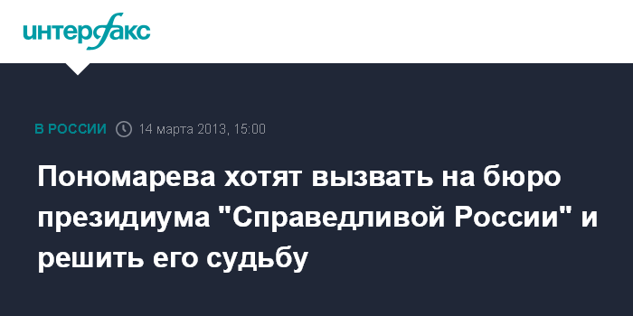 Пономарева хотят вызвать на бюро президиума "Справедливой России" и решить его судьбу