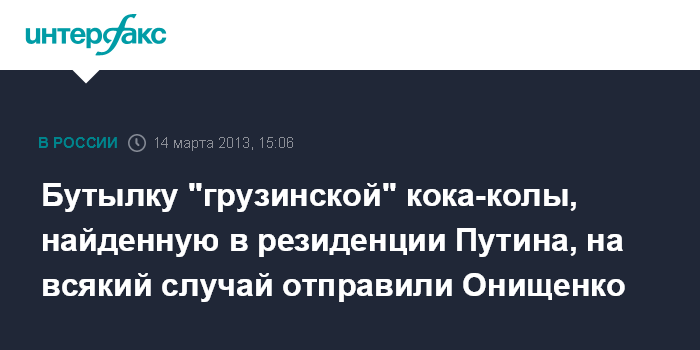 Бутылку "грузинской" кока-колы, найденную в резиденции Путина, на всякий случай отправили Онищенко