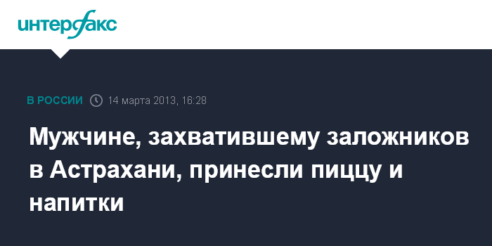 "Злоумышленник требовал пиццу и напитки, все это ему уже предоставлено", - сообщили "Интерфаксу" в пресс-службе управления МВД по Астраханской области.