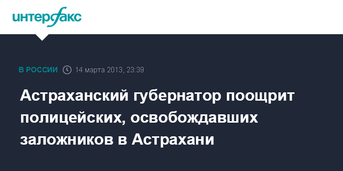 Астрахань. 14 марта. INTERFAX.RU - Сотрудники полиции, участвовавшие в освобождении заложников из Волго-Каспийского рыбопромышленного колледжа в Астрахани, будут поощрены губернатором Астраханской области Александром Жилкиным.