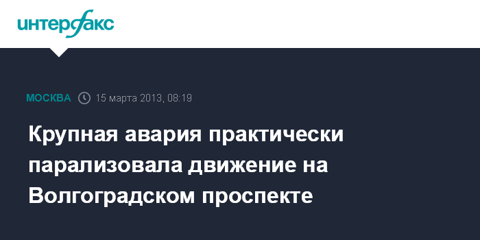 Москва. 15 марта. INTERFAXS.RU - Крупное ДТП произошло на Волгоградском проспекте в Москве, сообщили "Интерфаксу" в пресс-службе управления ГИБДД Москвы в пятницу.
